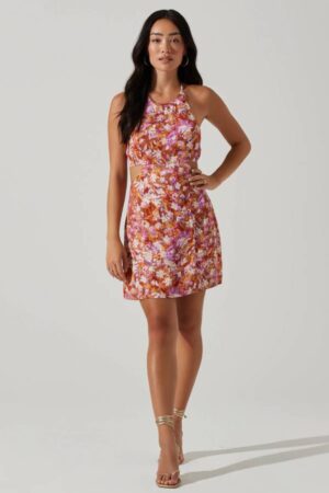 Clarita Floral Cutout Puff Sleeve Mini Dress